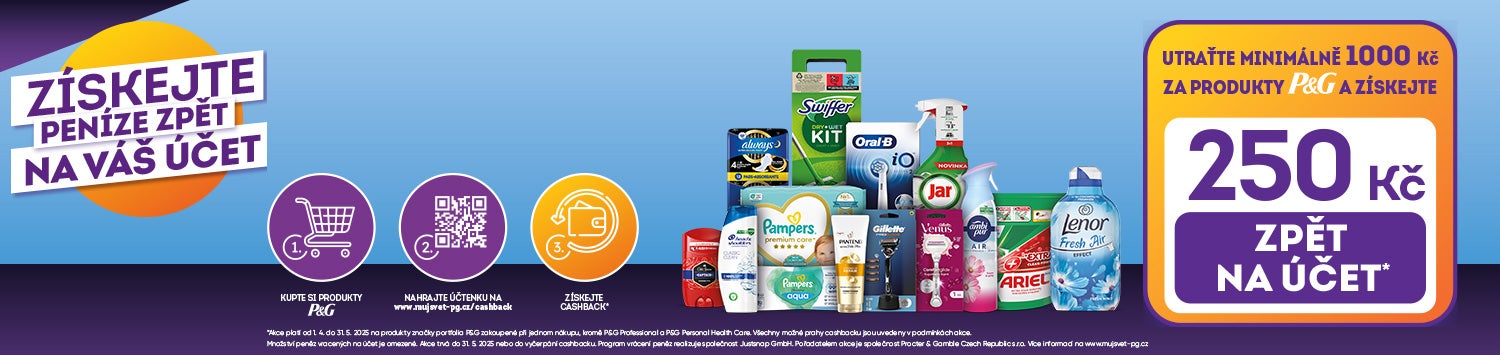Nakupte produkty značek P&G v období od 1.4.2025 do 31.5.2025.