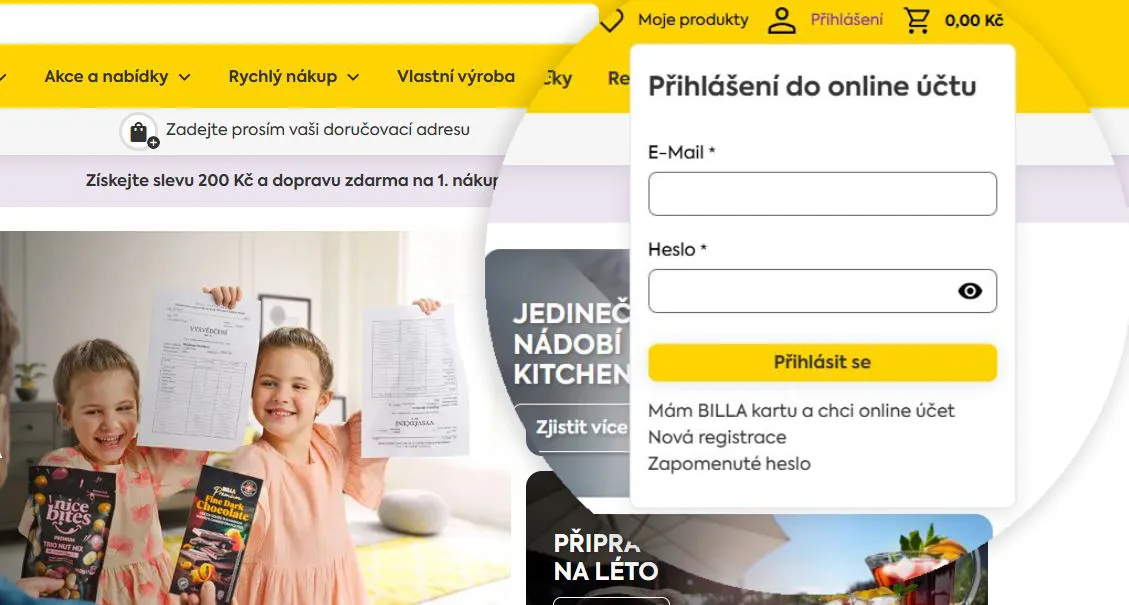 Pro využívání všech výhod a rychlejší nákup na e-shopu se registrujte hned. Vytvořte si online účet k vaší BILLA kartičce a pokračujte ve sbírání bodů i online nebo si založte zcela nový účet zde.
