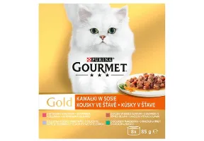 59,90 Kč1 kg 119,80 Kč - GOURMET Gold kousky ve šťávě s lososem a kuřetem 85g