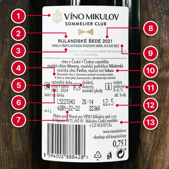 Čím více informací na etiketě, tím lépe. Bohatý popis značí, že vinař nic netají, a naopak chce zákazníkovi usnadnit výběr. Mnohdy se dočtete zajímavosti o výrobci a místě, kde sídlí i zda je možnost vinařství navštívit. Některé etikety radí s teplotou podávání vína a párování s jídlem, které se hodí při servírování.