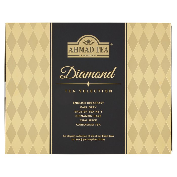 Ahmad Tea Diamond Selection je elegantní kolekce s diamantovým vzorem, která obsahuje 6 druhů špičkových čajů, které si můžete užít kdykoliv během dne.