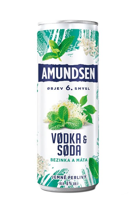 Osvěžující drink na párty s přáteli, to je nová Amundsen Vodka & Soda s příchutí bezinka a máta.