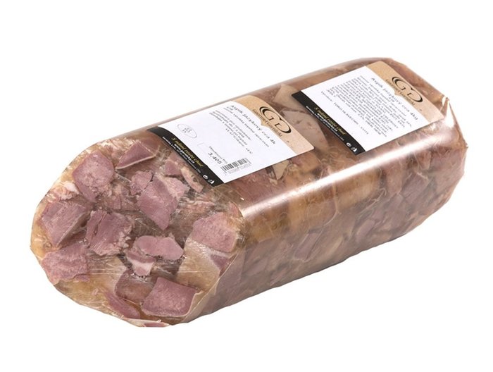 Vepřový jazyk 82%, pitná voda, celerový salát 4,4%, jedlá želatina, jedlá sůl, konzervant: E250, jodičnan draselný, látka zvýrazňující chuť a vůni: E621 a E635, směs koření se sójou, barvivo: E150d, řepkový olej, stabilizátor: E451, zahušťovadlo E407a, antioxidant: E316, cukr, extrakty koření. Obal není jedlý.