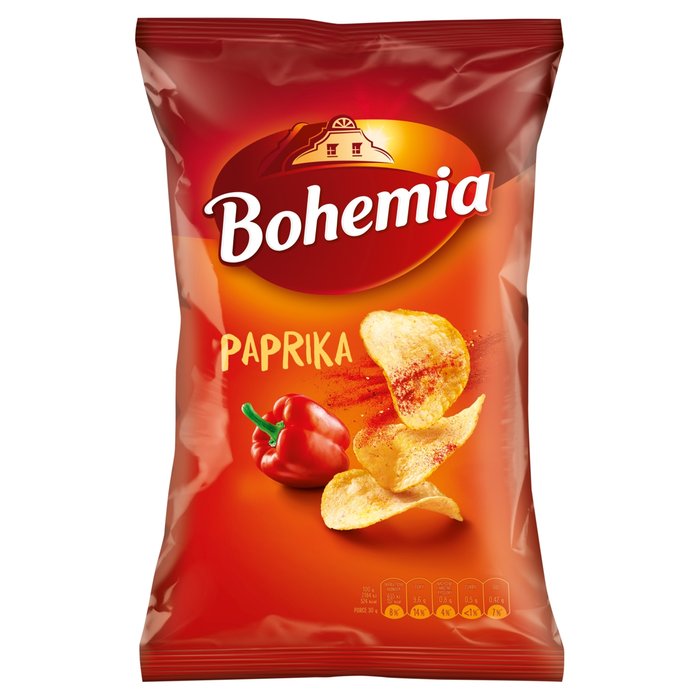 Brambory, Rostlinné oleje (slunečnicový a řepkový v různém poměru), Sušená paprika (1,4 %), Jedlá sůl, Cukr, Přírodní aroma, Kvasničný extrakt, Sušená cibule, Sušený česnek, Sušené kvasnice, Barvivo (paprikový extrakt), Kyselina (kyselina citronová)