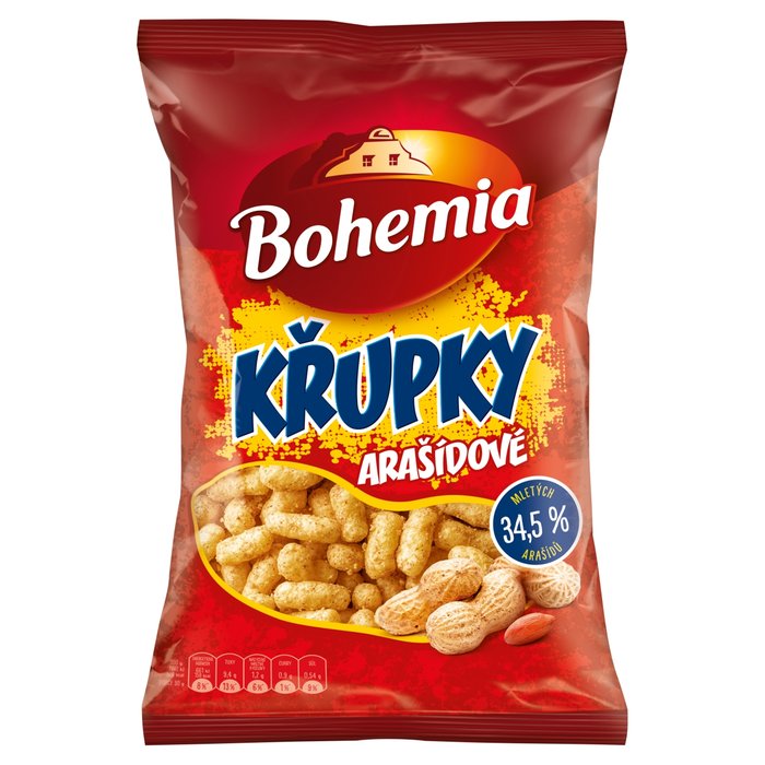 Kukuřičná krupice (50 %), Pražené loupané arašídy (34,5 %), Slunečnicový olej, Jedlá sůl