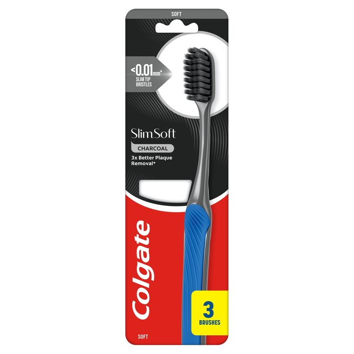 Colgate Slim Soft Charcoal zubní kartáček je navržen pro 3x lepší odstranění zubního plaku* a pro hloubkové čištění. Zubní kartáček Colgate Slim Soft Charcoal vyčistí až 6x* hlouběji podél linie dásní díky kónickým vláknům. * vs kulatá vlákna.