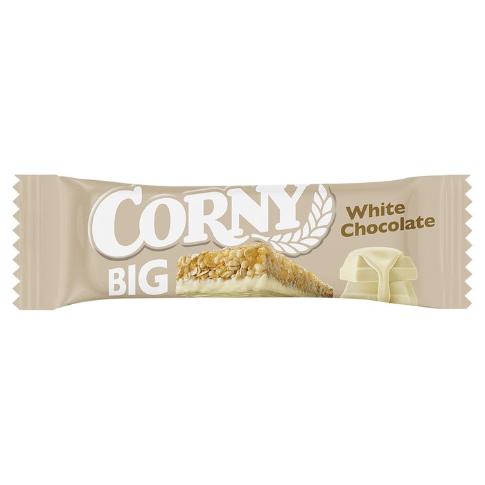 CORNY BIG v bílé čokoládě je tou pravou cereální tyčinkou, která spolehlivě zažene hlad a potěší chuťové pohárky. Čekají na tebe kvalitní cereálie a křupinky zalité vynikající bílou čokoládou.