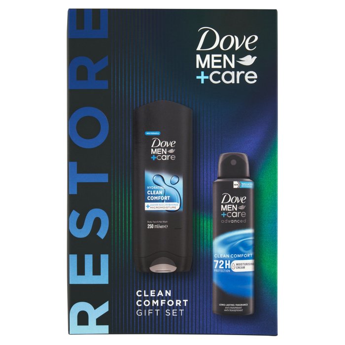 Pánská kosmetická sada - obsahuje Dove Men+Care sprchový gel Clean Comfort 250 ml, Dove Men+Care antiperspirant sprej Advanced Clean Comfort.