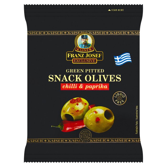 Franz Josef Kaiser Exclusive Řecké zelené olivy bez pecky s chilli a paprikou 70g
