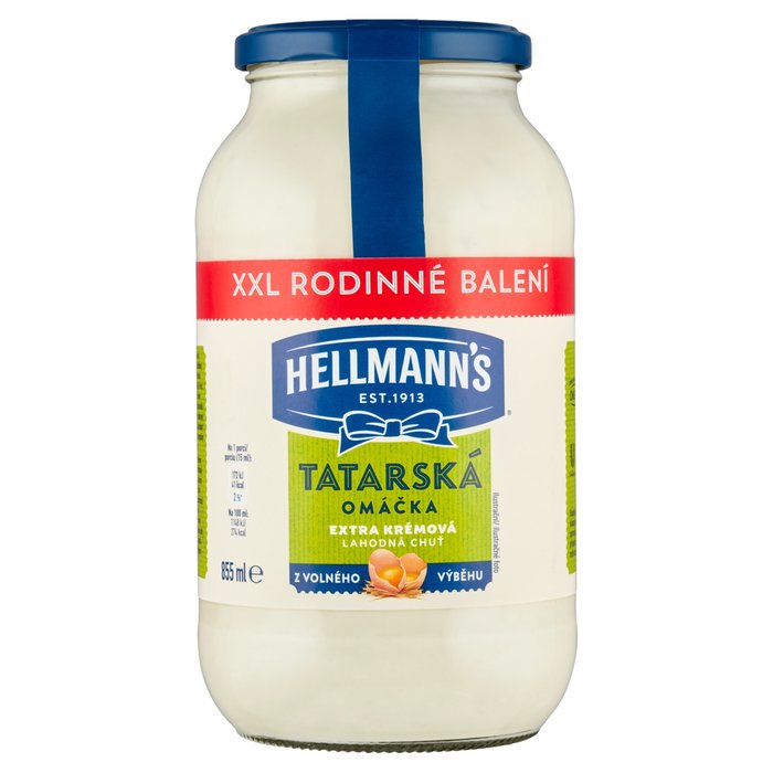 Nová extra krémová Hellmann´s tatarská omáčka je vyrobena z jednoduchých ingrediencí jako je olej, ocet a vejce. Na rozdíl od majonézy však obsahuje kousky zeleniny - cibulky, pažitky a okurek. Výborně se hodí k hranolkám a smaženému sýru, ale i dalším oblíbeným pokrmů, které skvěle dochutí. Značka Hellmann's je nejen na straně jídla, ale také na straně zvířat, proto Hellmann's majonézy a tatarky obsahují vejce z volného chovu. Hellmann's dodává více chuti do vašich oblíbených receptů pomocí chutných produktů, které jsou vyrobeny ze zodpovědně získaných surovin.