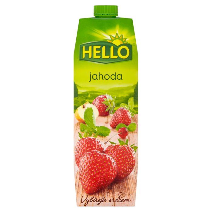 pitná voda, jahodová dřeň z koncentrátu (20%), jablečná dřeň z koncentrátu (17%)cukr, višňová šťáva z koncentrátu (6%), kyselina: kyselina citronová, antioxidant: kyselina askorbová. Podíl ovocné složky: nejméně 43%. Pasterováno. Vyrobeno z koncentrátů.
