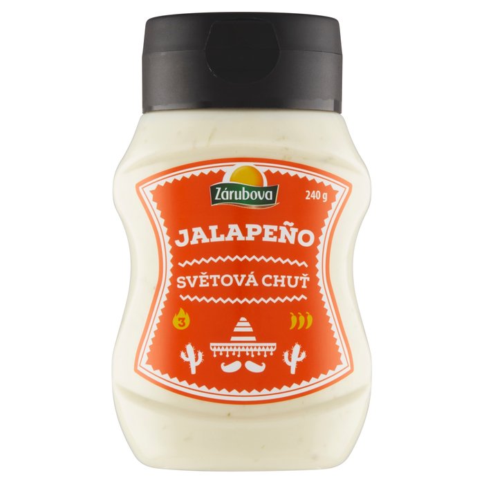 Řepkový olej, pitná voda, jalapeno papričky (jalapeno papričky, pitná voda, kvasný ocet lihový, jodizovaná sůl, cibule, oregáno, bobkový list, česnek, sojový olej), vaječné žloutky (vaječné žloutky, jedlá sůl, maltodextrin), hořčice (pitná voda, hořčičné semeno, ocet kvasný lihový, jedlá sůl, koření), cukr, modifikovaný kukuřičný škrob, ocet kvasný lihový, jedlá sůl, stabilizátory (guma guar, xanthan), regulátor kyselosti (kyselina citronová), konzervant (sorban draselný), barvivo (karoteny)