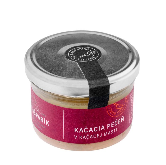 kachní játra 59%, kachní sádlo 40%, kuchyňská sůl