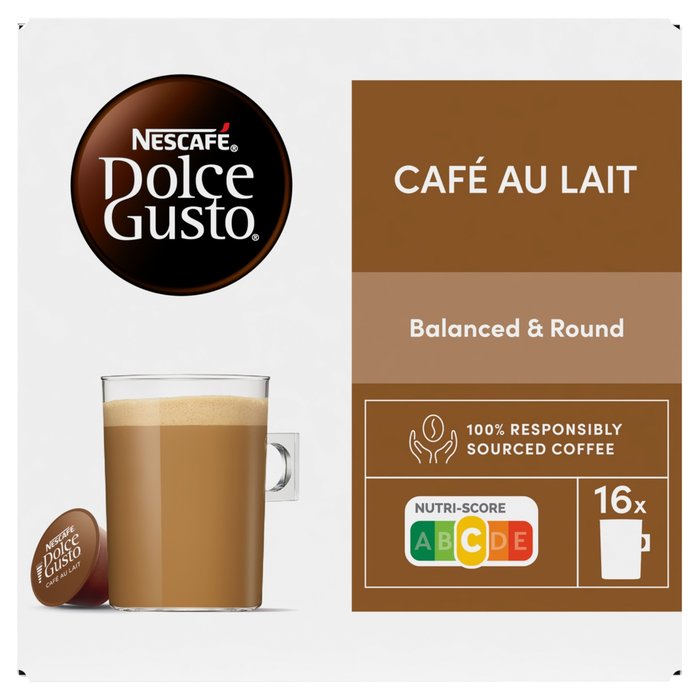 Objevte NESCAFÉ® Dolce Gusto® Café au Lait, vyváženou kombinaci intenzivní kávy a jemného mléka v jedné kapsli; nejlepší je podávat v hrnku (180 ml). Naši talentovaní tvůrci zkombinovali intenzitu čisté kávy robusta s jemnou krémovostí mléka a tak vznikla v hrnku harmonická, vyvážená káva se známkami karamelu, se zabarvením po pražených obilovinách a s kulatou texturou.