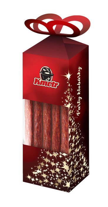 Elegantní dárkové balení trvanlivých, jemně pikantních klobásek. Jedinečná kombinace masa a koření zpříjemní všechny Vaše společné chvíle. Klobásky mají vysoký obsah masa. Na 100g výrobku bylo použito 150g masa.