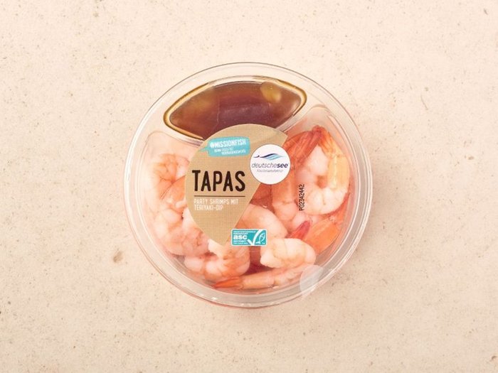 70 % KREVET (96 % KREVET, jedlá sůl, regulátory kyselosti/kyseliny: kyselina octová, kyselina mléčná, kyselina citronová; antioxidant: DISIŘIČITAN SODNÝ), 30 % Teriyaki dip (Cukr, voda, SÓJOVÉ BOBY, jedlá sůl, PŠENICE, lihový ocet, med, modifikovaný bramborový škrob, SEZAMOVÝ OLEJ, řepkový olej, zahušťovadla: guma guar, xanthan).