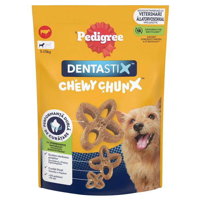 Doporučené dávkování: Psy malých plemen (5-9 kg) krmte 3 pochoutkami denně. Psy malých a středních plemen (9-13 kg) krmte 4 pochoutkami denně. Psy středních plemen (13-15 kg) krmte 5 pochoutkami denně. Tato žvýkací pochoutka je vhodná pouze pro psy o hmotnosti mezi 5 a 15 kg. Není vhodná pro psy do 5 kg nebo 15 kg a více. Podobně jako u každého jedlého produktu dbejte na to, aby váš pes produkt řádně rozžvýkal. Spolknutí jakéhokoli kusu vcelku může být pro psa škodlivé nebo až fatální. Snižte odpovídajícím způsobem množství hlavního krmiva. Po otevření udržujte pečlivě uzavřené a spotřebujte do 1 týdne. Čerstvá pitná voda by měla být vždy k dispozici.