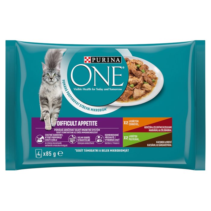 Doporučené denní krmné dávky by měly být přizpůsobeny klimatickým podmínkám, úrovni aktivity a fyzické kondici kočky. Podávejte při pokojové teplotě. Čistá čerstvá pitná voda by měla být vždy k dispozici. Případně lze 1 kapsičku nahradit 20 g granulí Purina ONE Adult.