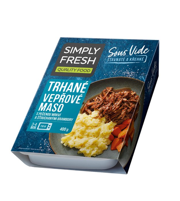 Simply Fresh Sous Vide trhané vepřové maso s pečenou mrkví a šťouchanými brambory 400g