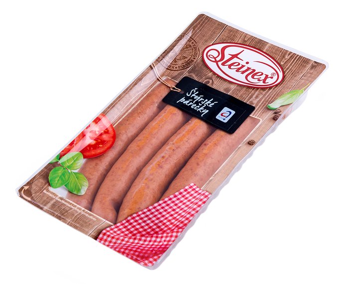 Vepřové maso 75 %, Hovězí maso 23 %, Voda, Jedlá sůl, Konzervant E250, Koření, Stabilizátor E451, Látka zvýrazňující chuť a vůni E621, Extrakty koření, Cukry, Antioxidant E316, Česnek, Hovězí kolagenní střevo