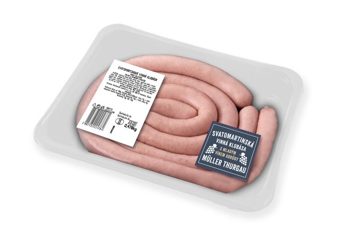 Vepřové maso 63%, pitná voda, vepřové sádlo, hovězí maso 4%, mladé bílé víno Műller Thurgau 3%, jedlá sůl s jódem (jedlá sůl, jodičnan draselný), koření a extrakty koření, stabilizátor E331, cukr, přírodní aroma, skopové střívko.