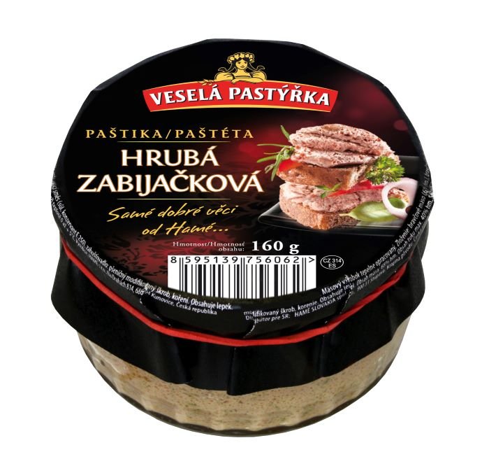 Veselá pastýřka Hrubá zabíjačková paštika 160g. Masný výrobek tepelně opracovaný.