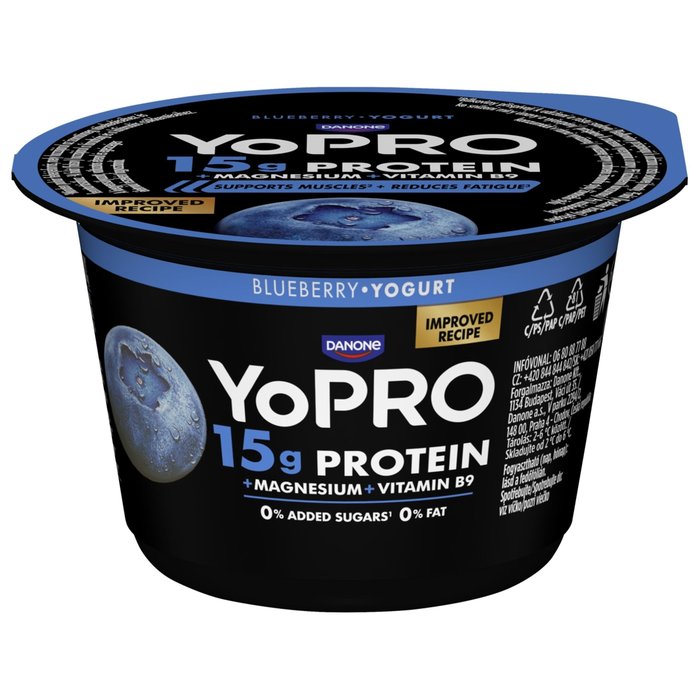 Vyzkoušejte novinku! YoPRO zakysaný výrobek s borůvkovou příchutí a 15 g proteinu v jedné porci je skvělá svačina do ruky, kterou ocení profesionální i hobby sportovci. Tento výrobek navíc obsahuje nízké množství tuku a je bez přidaného cukru. Díky vysokému obsahu bílkovin podporuje růst a udržení vašich svalů a jejich správné fungování.