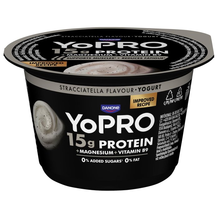 Vyzkoušejte novinku! YoPRO zakysaný výrobek s stracciatella příchutí a 15 g proteinu v jedné porci je skvělá svačina do ruky, kterou ocení profesionální i hobby sportovci. Tento výrobek navíc obsahuje nízké množství tuku a je bez přidaného cukru. Díky vysokému obsahu bílkovin podporuje růst a udržení vašich svalů a jejich správné fungování.