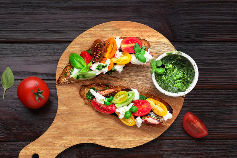 Přidejte několik lístků čerstvé bazalky, navrch zakápněte pár kapek kvalitního olivového oleje a máte hotovo.