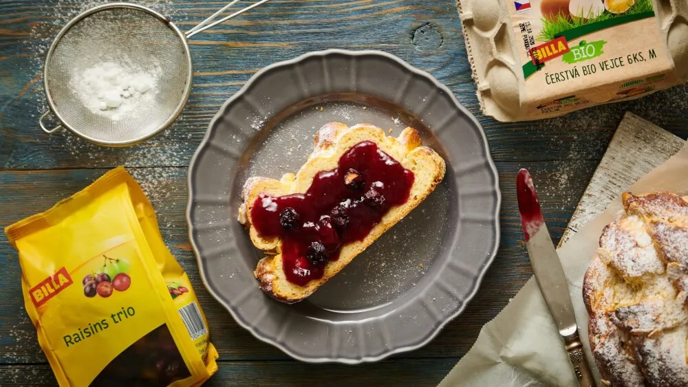 - 1 hrst (předem půl hodiny namočené v rumu)Rozinky trio