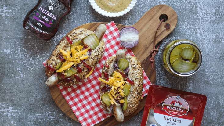 Jedno z nejoblíbenějších jídel do ruky, které k nám připutovalo z Ameriky. Hot dog se narozdíl od našeho starého dobrého párku v rohlíku podává v podélně rozříznuté bagetce nebo větším rohlíku a má bohatší oblohu. Místo párku můžete použít grilovanou klobásku, tak jako my v našem receptu na hot dog s klobáskou a cheddarem.