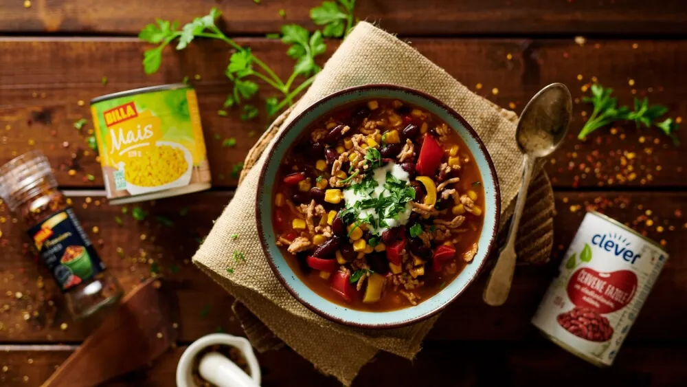 - 2 konzervyČervené fazole ve sladkoslaném nálevu