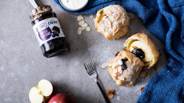 Lépe funguje, když je svár vespod jablka. Zabalená je už jen celá potřete rozšlehaným vajíčkem a pečte dozlatova.