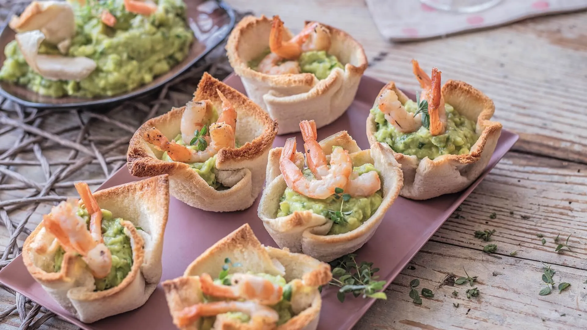 Oslavy a večerní posezení si zaslouží předkrm i jednohubky v jednom. A přesně to pro vás dnes s naším novým receptem máme. Hlavní náplní těchto skvělých košíčků je guacamole, které snadno vylepšíte krevetami a čerstvými bylinkami.