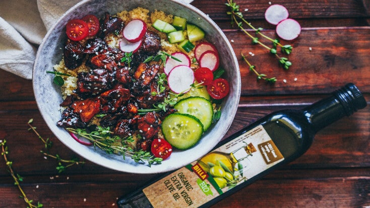 Podáváme s kuskusem a zeleninou, zasypané sezamovými semínky.
