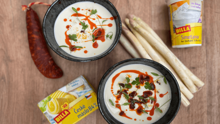 Pak celou směs vymixujeme dohladka a přepasírujeme přes hladký cedník.