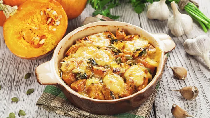 Nikdy jste neslyšeli o kombinaci dýně a kuřete? Tak to jste přišli o hodně! Ideální jídlo z jednoho rendlíku, které získá skvěle křupavou strukturu díky zapečení se sýrem.