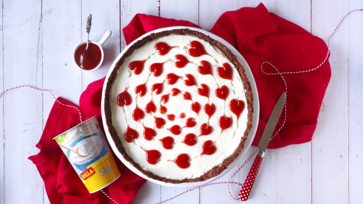 Překvapte svou drahou polovičku lahodným srdíčkovým koláčem! Skyr cheesecake s jahodovým džemem vám pomůže vykouzlit tu pravou valentýnskou atmosféru.