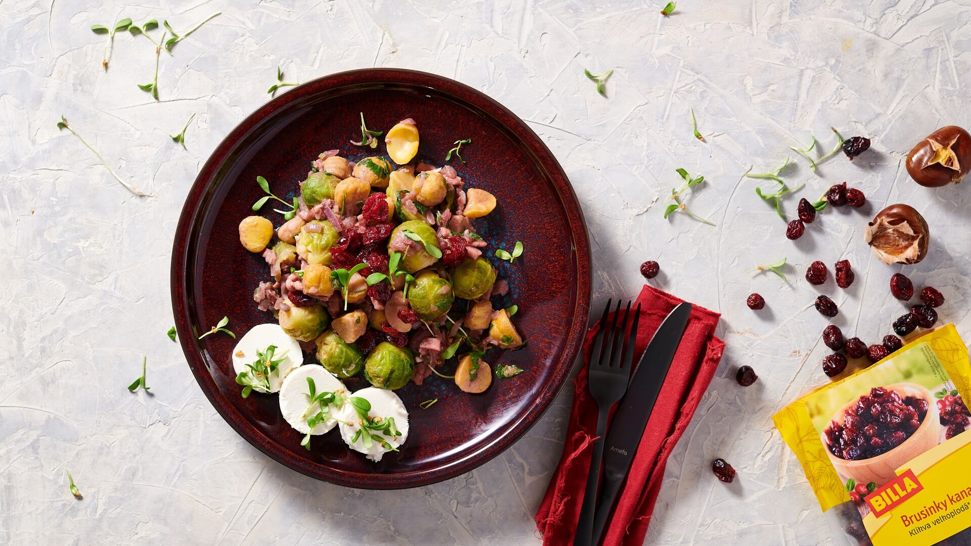 Růžičková kapusta s čerstvým kozím sýrem a kaštany