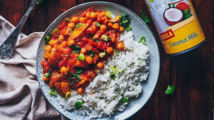Cizrnové kari s pečenými brambory