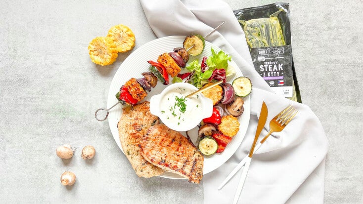 Grilované vepřové steaky se zeleninovými špízy