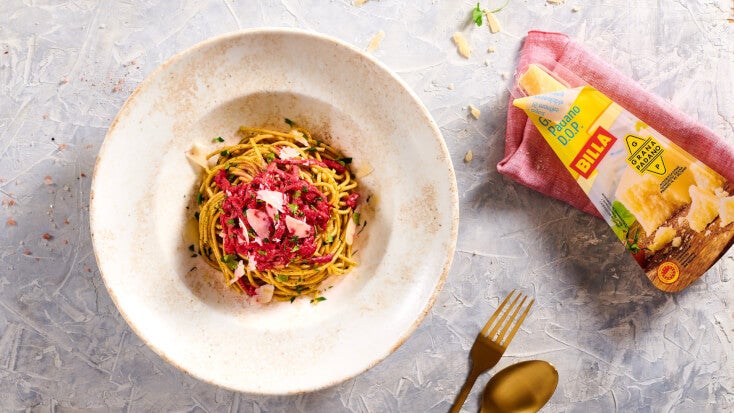 Krémové celozrnné špagety s rukolovým pestem