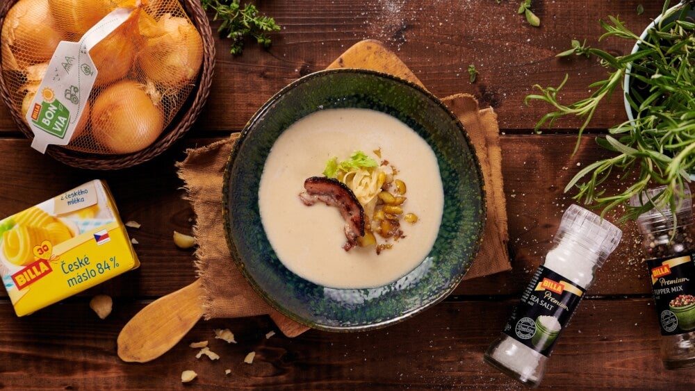 Kuba se smetanovou omáčkou a nakládanými cibulkami