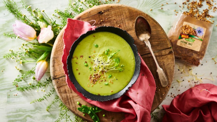 Hráškový krém se semínky a klíčky