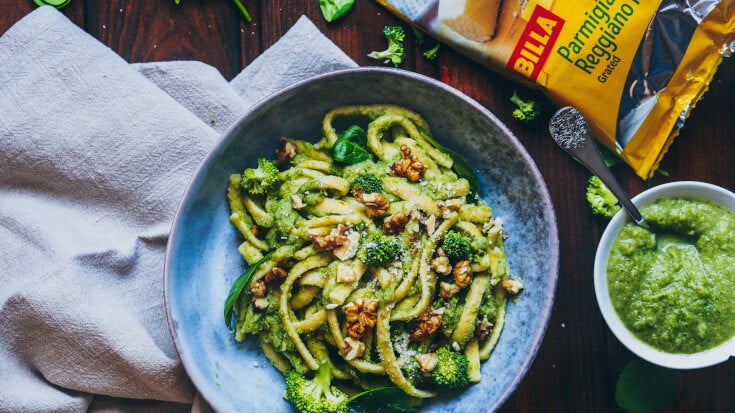 Špecle s brokolicovou omáčkou a ořechy