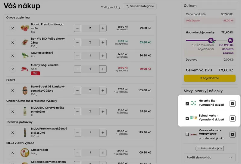 Za každý nákup v e-shopu BILLA získáte 5 nálepek, stačí je zakliknout v košíku.