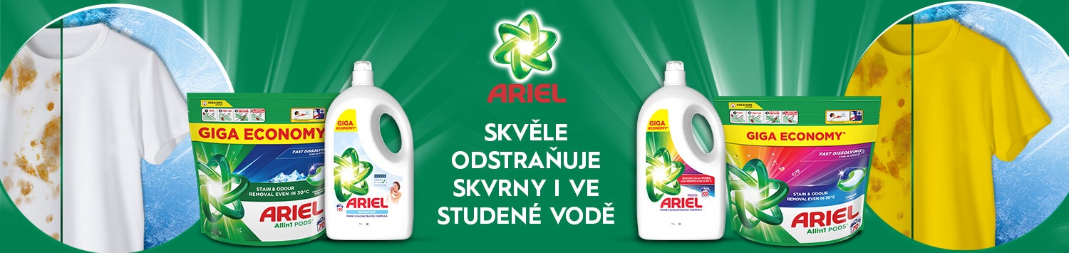 O naše oblečení se Ariel stará již několik desítek let, během nichž trh obohatil o řadu inovativních produktů a výrazně zvýšil efektivitu praní. Cílem Arielu je vývoj účinných pracích prostředků, které budou maximálně šetrné k životnímu prostředí.